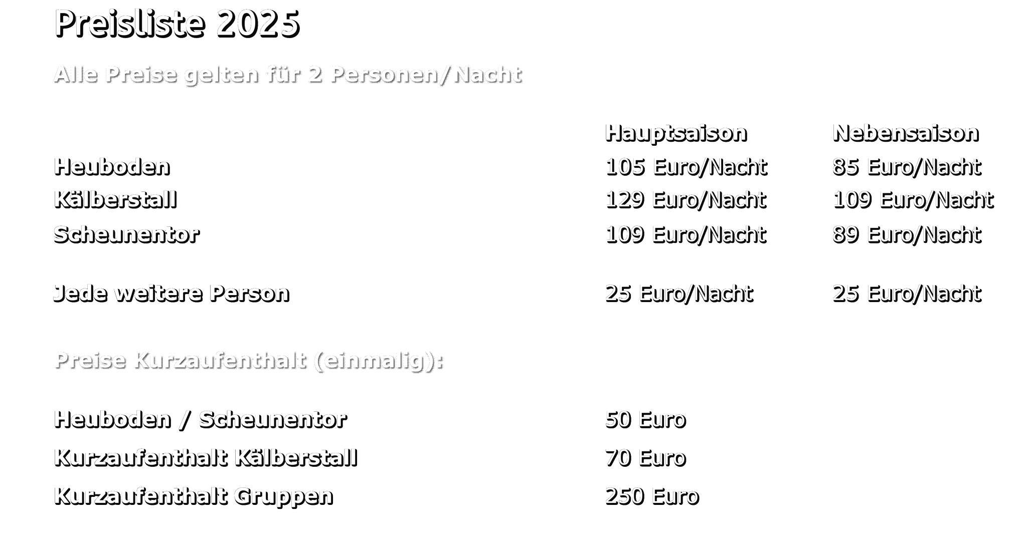 Alle Preise verstehen sich inkl. der gesetzlichen MwSt. und inkl. Endreinigung.