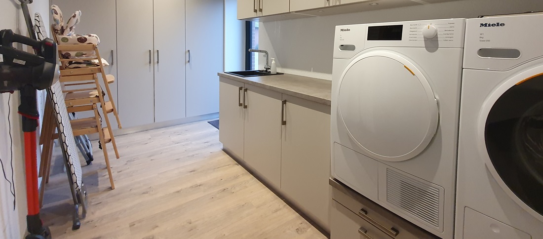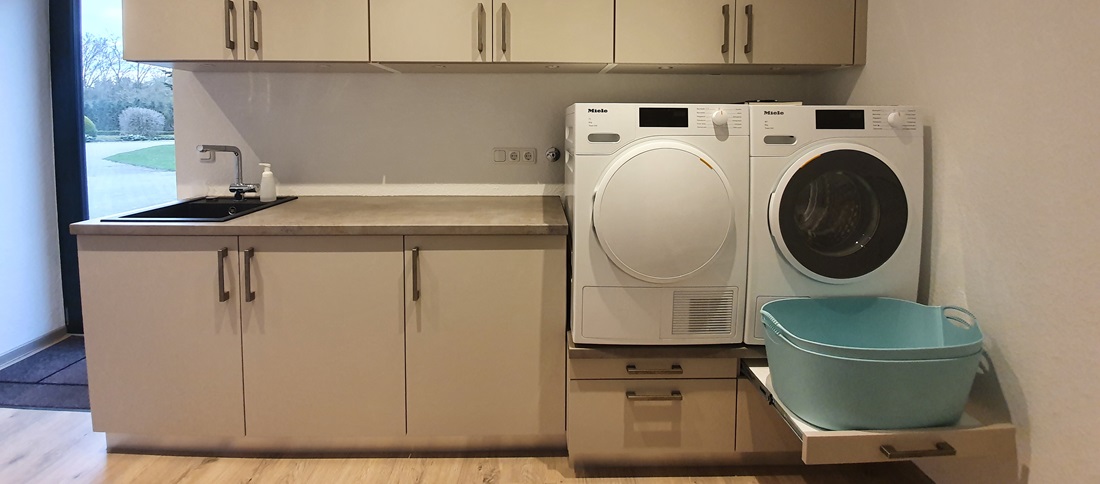Unser Waschraum ist mit Waschmaschine und Trockner ausgestattet und bietet zudem ein Bügelbrett mit Bügeleisen, einen Wäscheständer, Akku-Staubsauger, Besen uvm.
